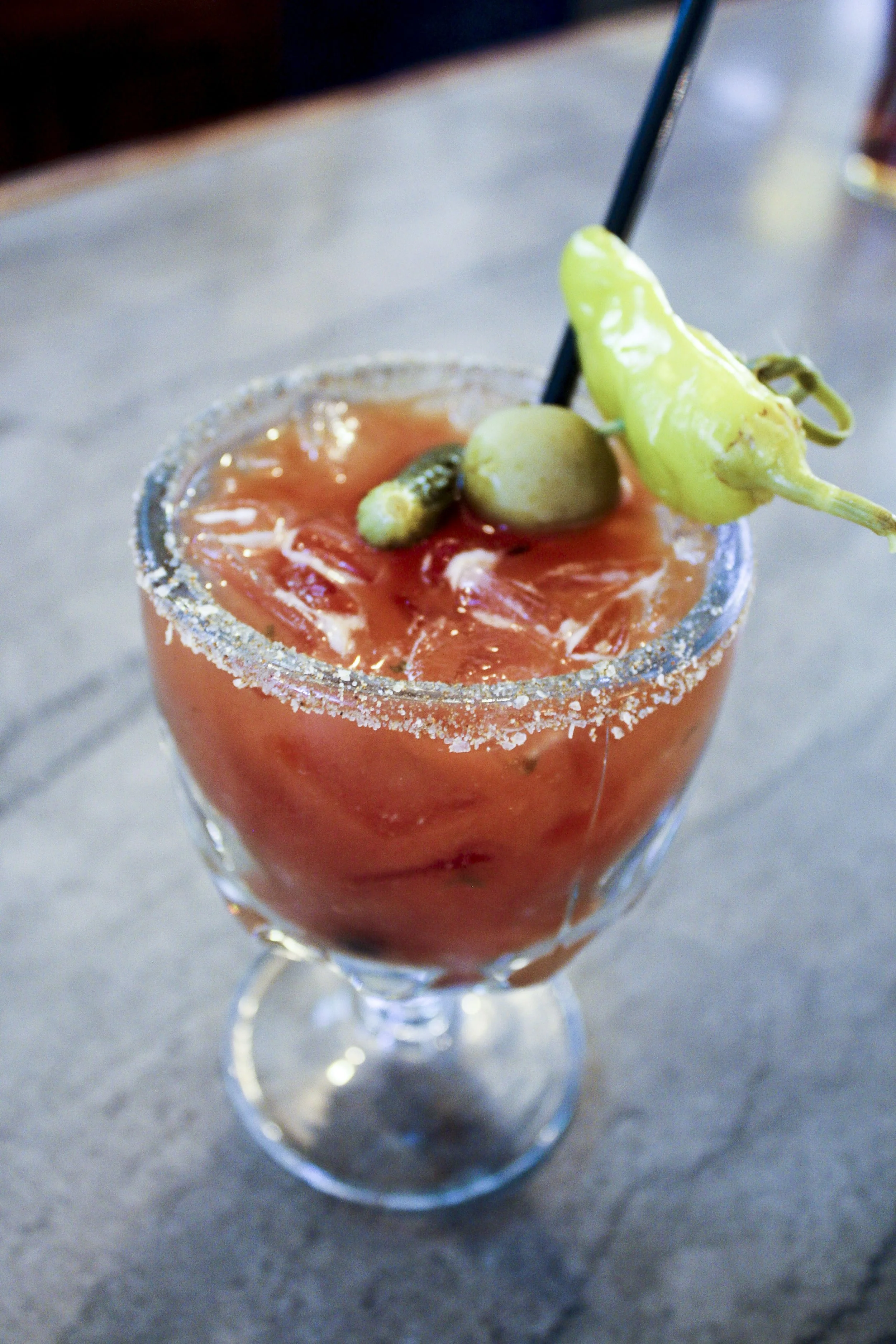 The bloody mary at K.C. Branaghan’s is the kind of bloody mary you should get in an Irish bar: stiff and straightforward with a little spice and a lot of celery salt flavor. Juices from the pepperoncini provide a nice acidity, and the tiny pickle is just plain fun. $8