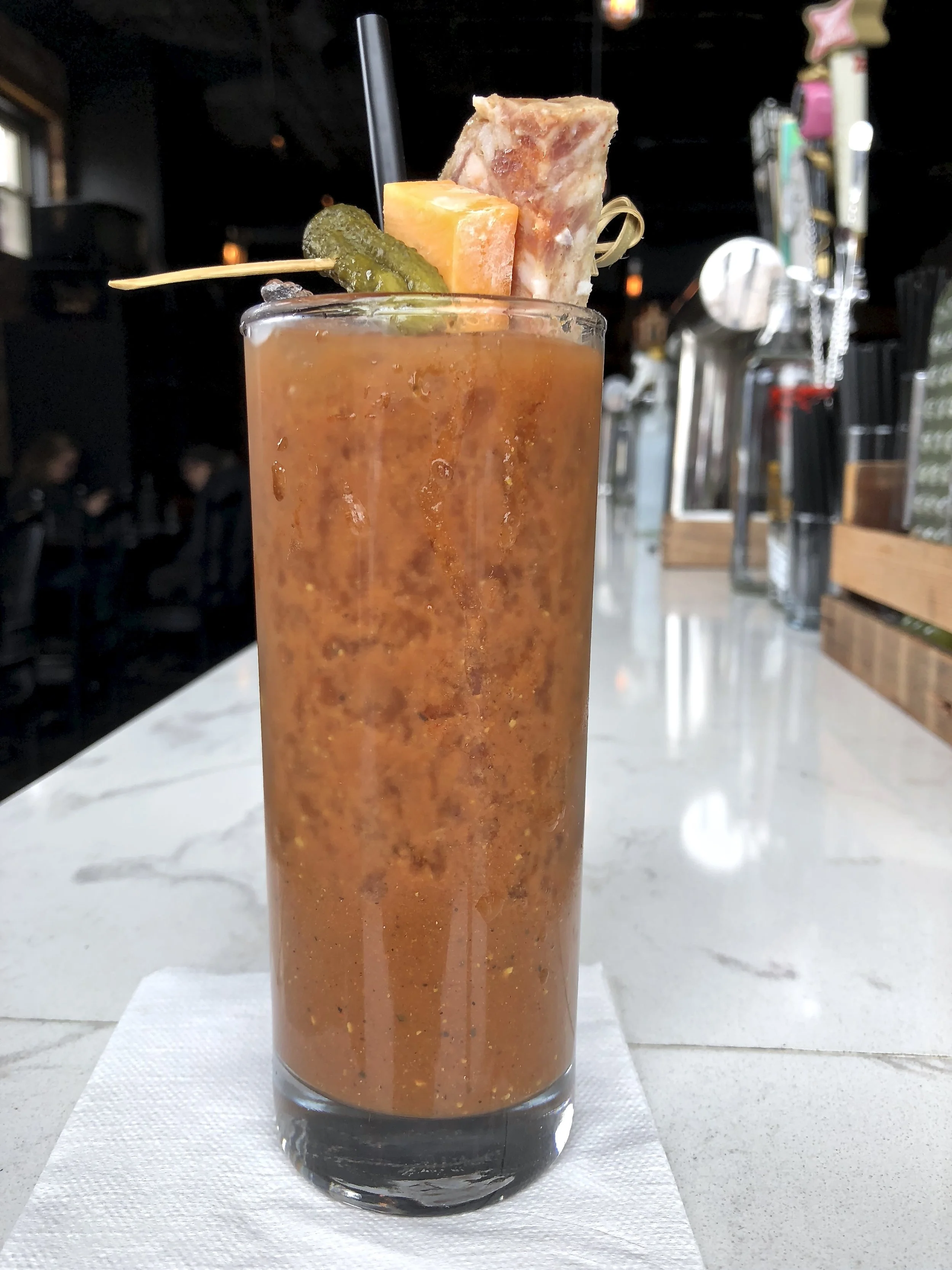 Have you ever walked into a bar and thought, “I just know I’m gonna have a stellar cocktail in this joint?!” Well, indeed, my intuition was spot on at Scofflaw. This inviting, notoriously-known-for-its-cocktails, bar with its dual fireplaces, vintage, reclaimed furniture and brick and wood accents, was the perfect spot to cozy up for a belly-warming Bloody Mary.